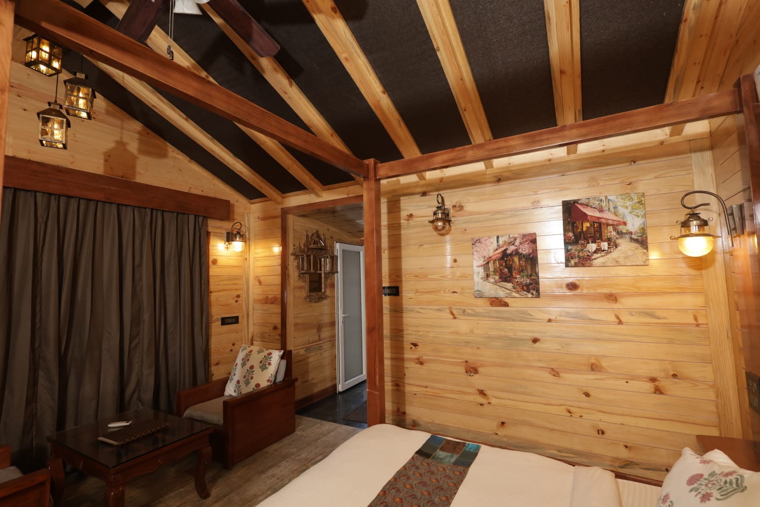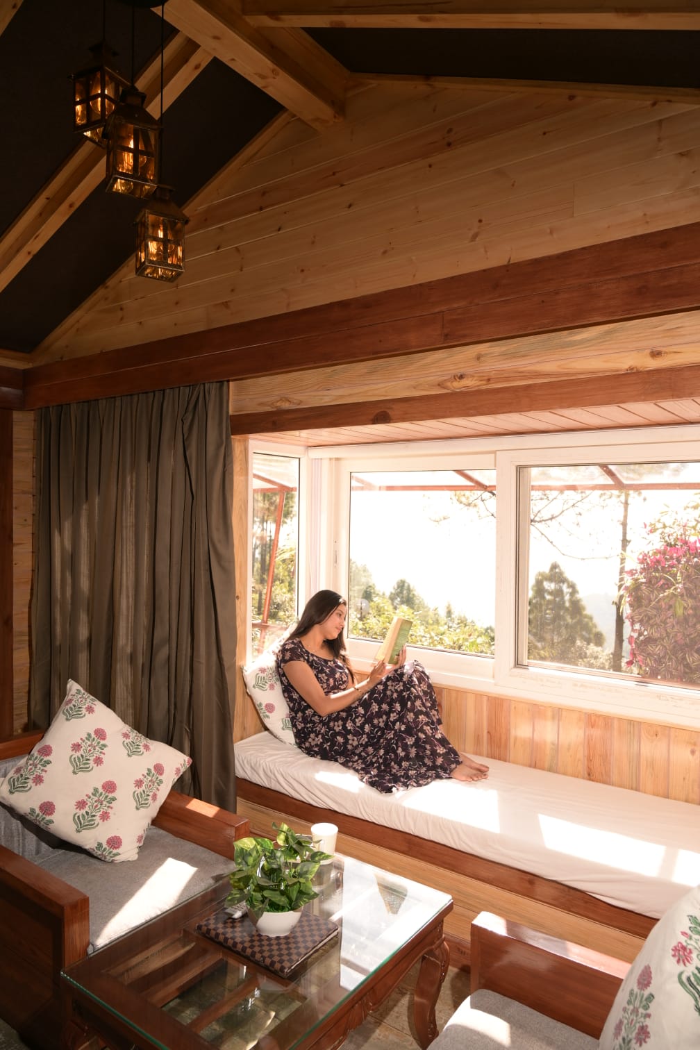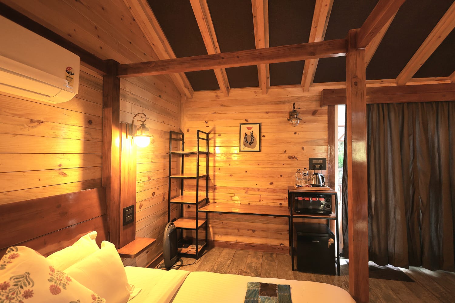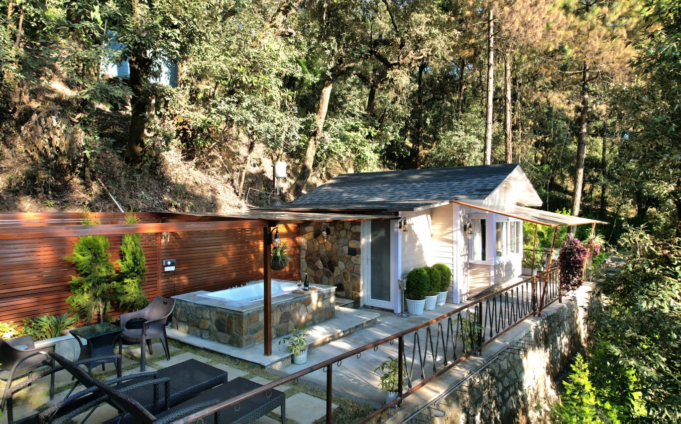 This cottage features a heated outdoor private Jacuzzi with mesmerizing valley view. If you're in the mood to test out cabin life with a bunch of friends, you can't go wrong with this exclusive cabin on a hilltop, featuring killer views, wooden interiors & amenities at every turn. Sip your morning coffee or afternoon cocktail at the balcony and take it easy after dark around the stone fire pit at the outdoors. If you do feel like venturing out, you're steps from a lake and countless nearby trails.