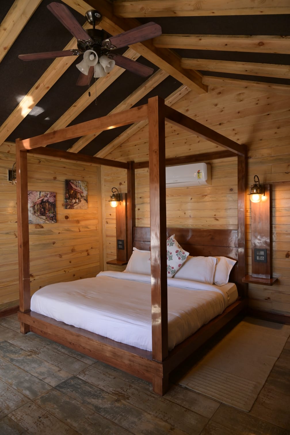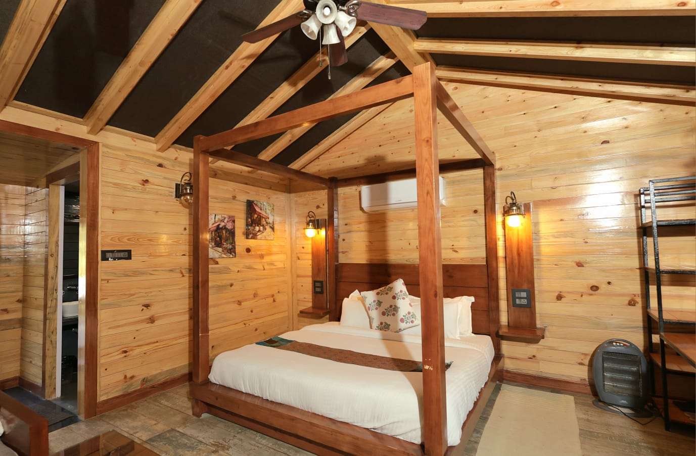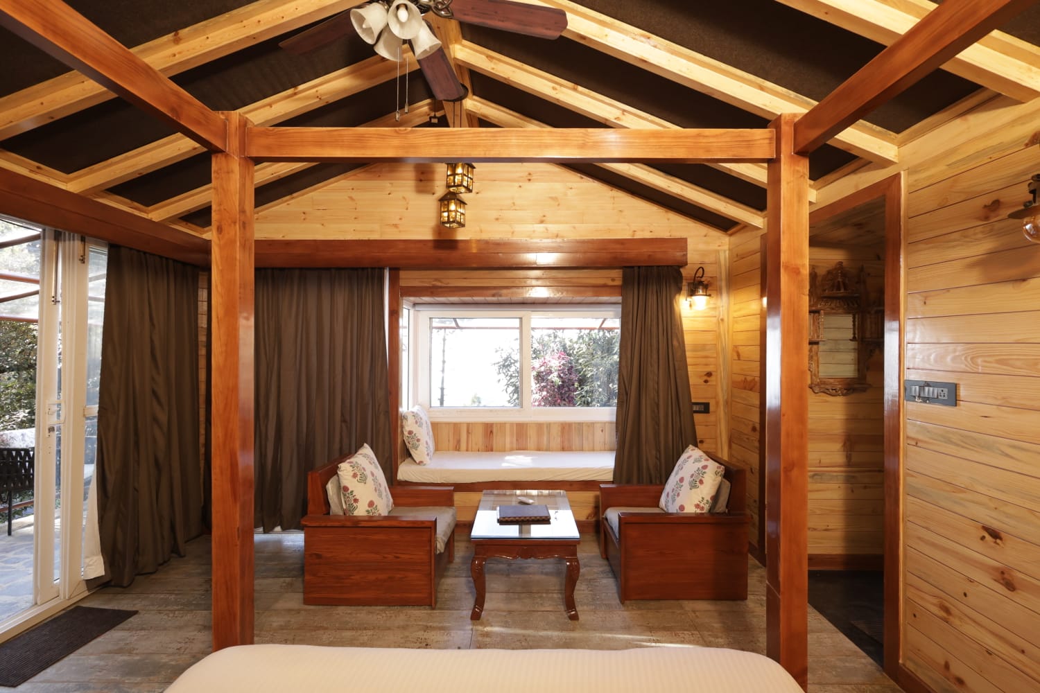 This cottage features a heated outdoor private Jacuzzi with mesmerizing valley view. If you're in the mood to test out cabin life with a bunch of friends, you can't go wrong with this exclusive cabin on a hilltop, featuring killer views, wooden interiors & amenities at every turn. Sip your morning coffee or afternoon cocktail at the balcony and take it easy after dark around the stone fire pit at the outdoors. If you do feel like venturing out, you're steps from a lake and countless nearby trails.